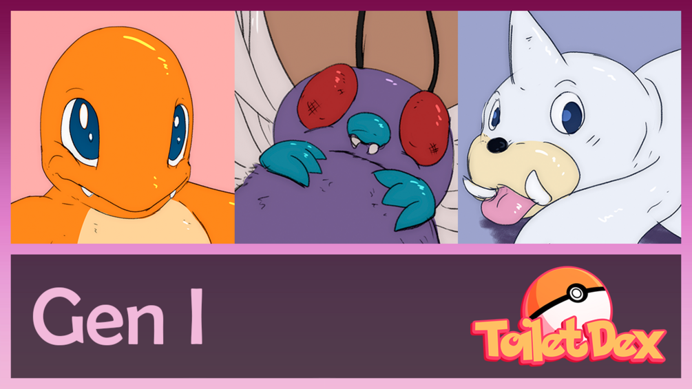 ToiletDex was a Patreon project where I, during streams, would randomize 12 PKM from each generation and then draw them. They are all genderless and have fart and scat alts, some mix them up.